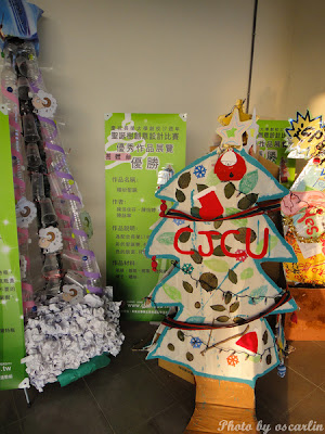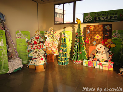 旁邊擺滿長榮大學師生設計的耶誕樹,應該等一會活動就會拿出來展示吧。