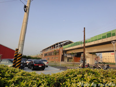 出了車站,可以看到車站全貌,整體外觀與長榮大學各棟建築物非常的一致,都是紅色磁磚外牆。