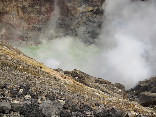 有較淡白煙的水蒸氣,也有較深白煙的硫磺氣體,