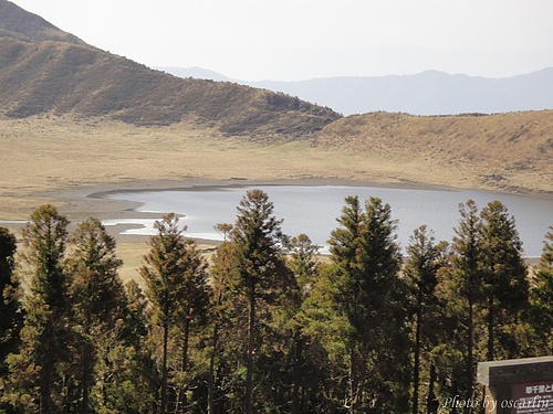 右邊可以拍到一整顆的米塚,左邊可以拍到一覽無遺的草千里,真壯觀。
