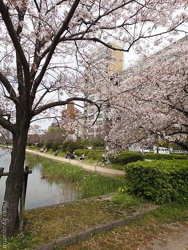 這裡也有櫻花,粉色系的,雖然已經開始長綠葉了,不過還是很漂亮。