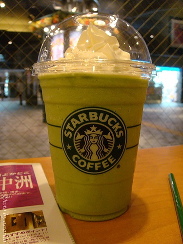 接個就到天神地下街逛街啦,ㄋㄟㄋㄟ用兌換卷換了starbucks的抹茶思樂冰,