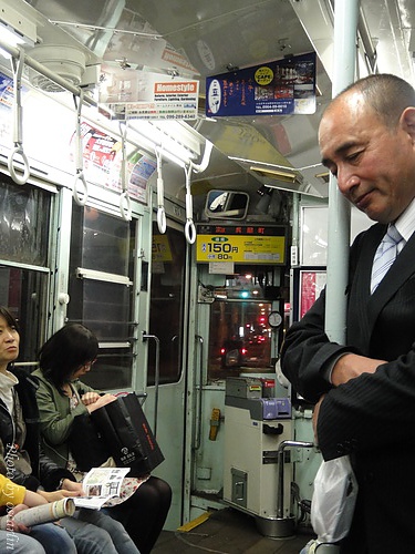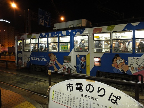 搭上熊本市電到飯店時,還看到一個酒醉的阿伯,