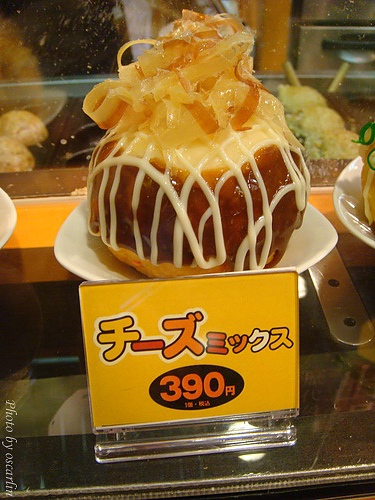 逛到一間超大炸彈燒的店,超大一顆,當場點了一顆起士口味的試試。