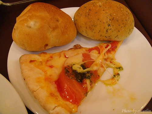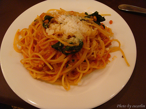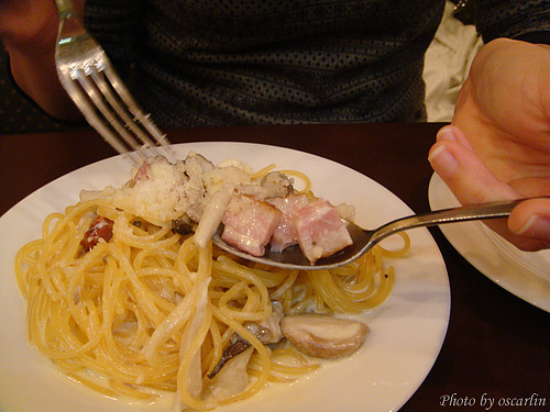接著點了兩盤現做的pasta,有培根奶油口味,和波菜番茄口味。分量夠我們一起分享品嘗,真不錯。