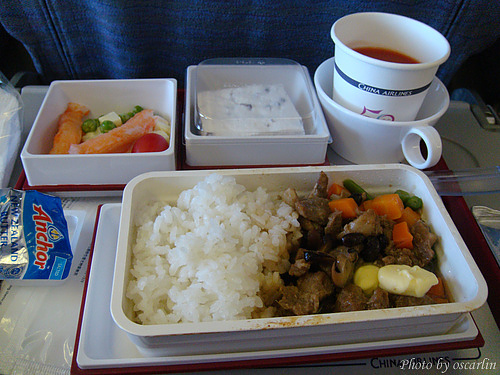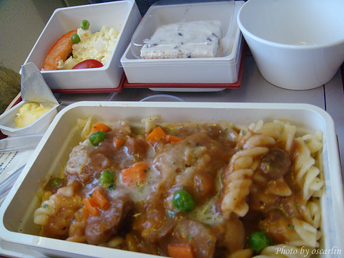 今天的飛機餐,一個是義大利麵,一個是燴飯,也許有點餓吧,還是把飛機餐吃光光了。
