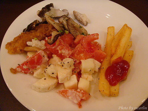 不過我比較喜歡...青花菜啦,一整個夾青花菜吃,還有起司塊也很好吃。