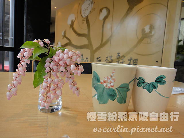 不久,店員送上茶水與菜單。杯子漂亮。花也漂亮,那是真的花。